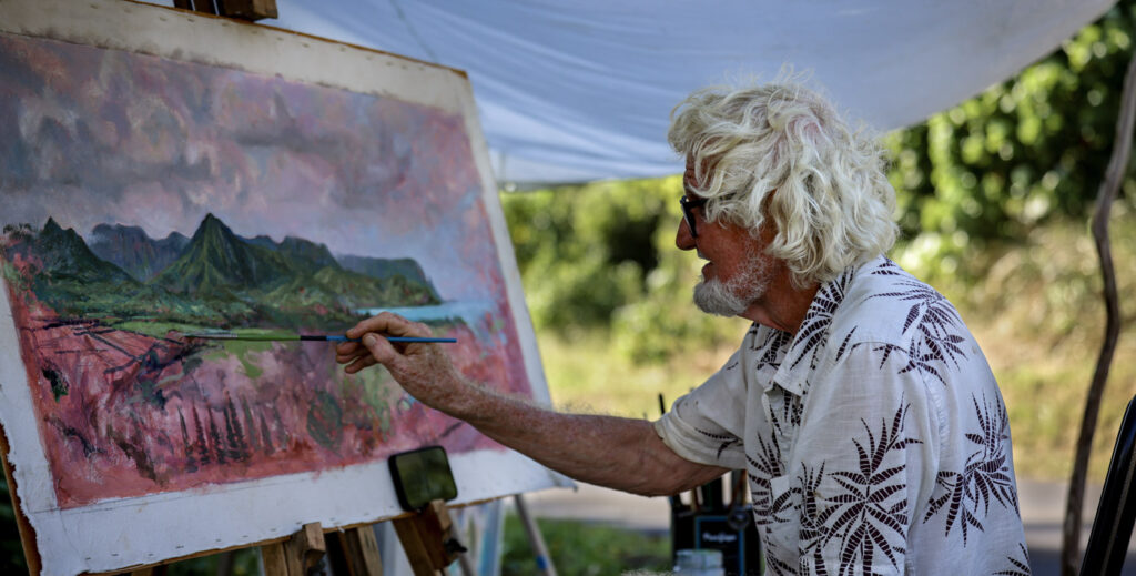 On March 18, 2020 the pandemic hit, Waikiki became a ghost town. I packed up my easel and display and never returned. The empty visitor destination was now unsettling. I bought an old truck. A welder and I started the initial work to convert the van to a tiny house/a mobile art shop. I packed it full of studio gear, my art and furniture and shipped it interisland to Kaua’i.